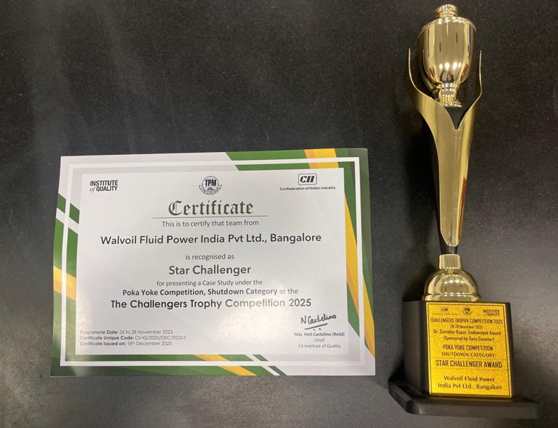 The second prize awarded to Walvoil India's Quality team at a poka yoke competition in 2025 is yet another reason to be proud of belonging to Walvoil.
